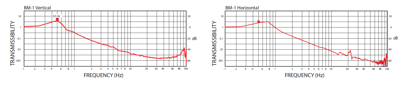 垂直方向上,整個負載范圍內(nèi)都能實現(xiàn) 0.5Hz 或再低的固有頻率,有效抑制垂直方向的振動干擾。從垂直性能曲線中,可直觀看到其在 0.5Hz 時出色的隔振效果。