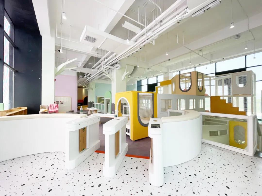 我們從限定空間的概念出發(fā),用理性的線條勾勒出空間的力量美感,在流暢通透的空間中增加與主題相符的阿貍元素,展現(xiàn)樂園所描繪出浪漫與美好的世界圖景,可以讓兒童在設計師的創(chuàng)想中,輕松自在地進行創(chuàng)意表達。